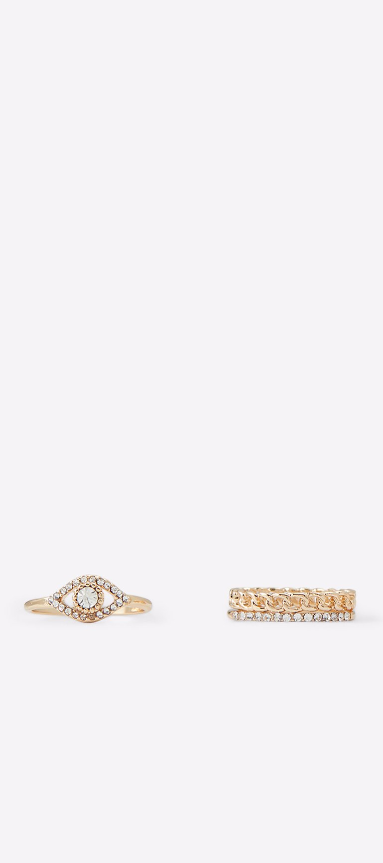 مجموعة رائعة مكونة من خمس قطع من الخواتم النسائية مصمم بتصميم كلاسيكي باللون الذهبي مرصعة بالكريستال الصافي وأحجار الكوبالت الأزرق