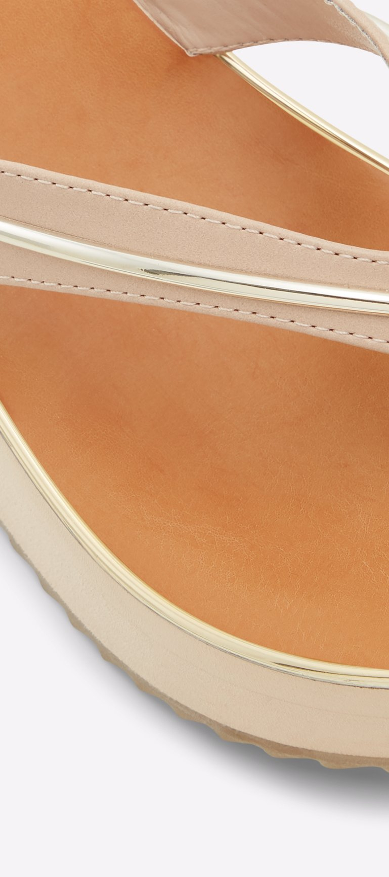 The thong sandal steps out of its causal connotation in an elevated wedge sandal silhouette. The result? A stand out style to cruise the beach, boardwalk, and beyond.