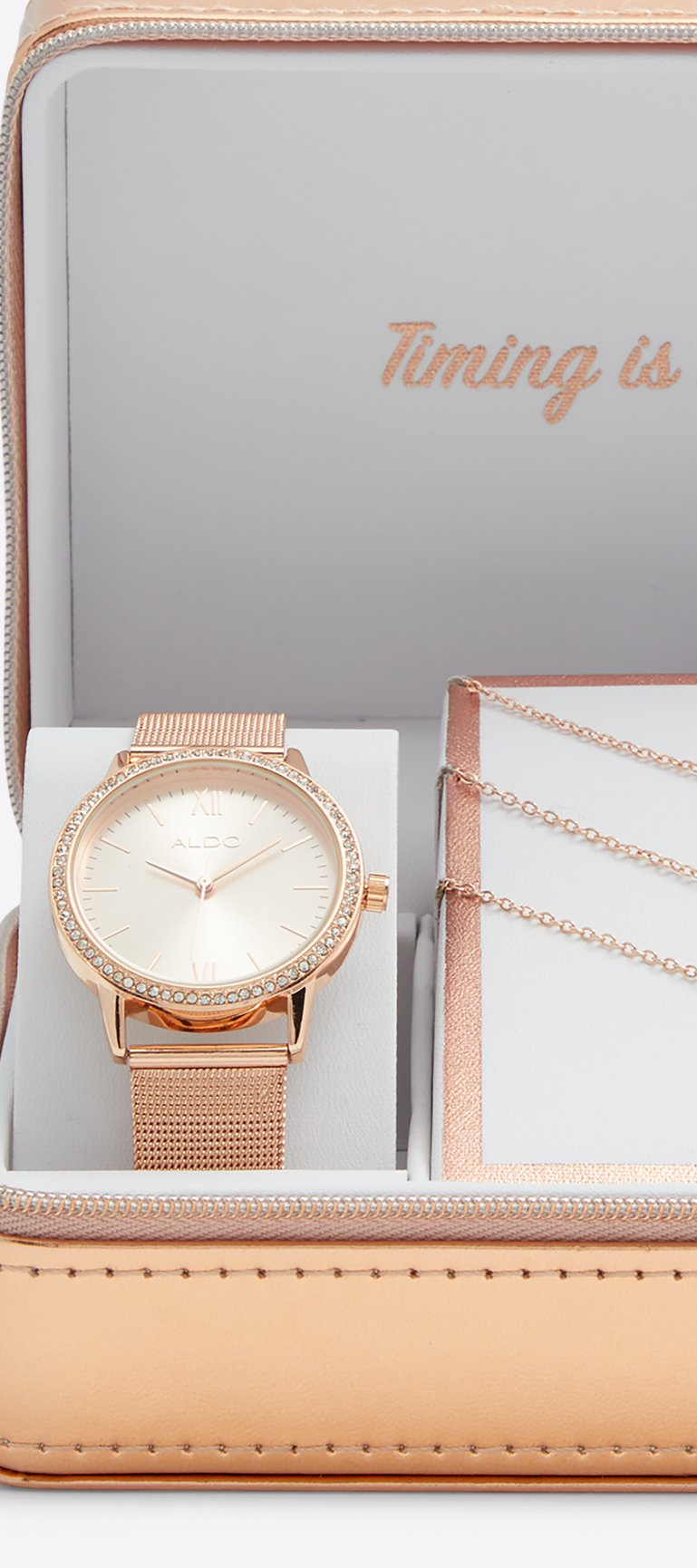 Style notes Perfect gift for all ladies, set of an elegant watch and 3 layer necklace in rose gold presented in the luxury box