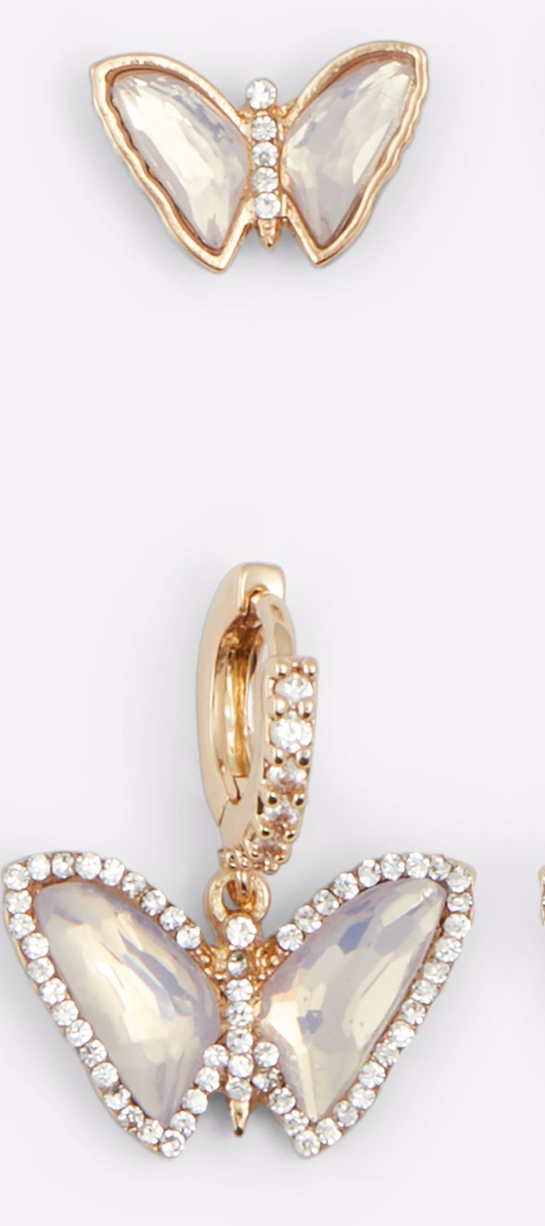 Add a feminine aesthetic to any outfit with this set of three pastel-toned pairs of pierced earrings. Opal-inspired hues with gold-tone settings include the classic round or butterfly-shaped stud plus a fun, hoop design with dangling butterflies for a light-hearted vibe.