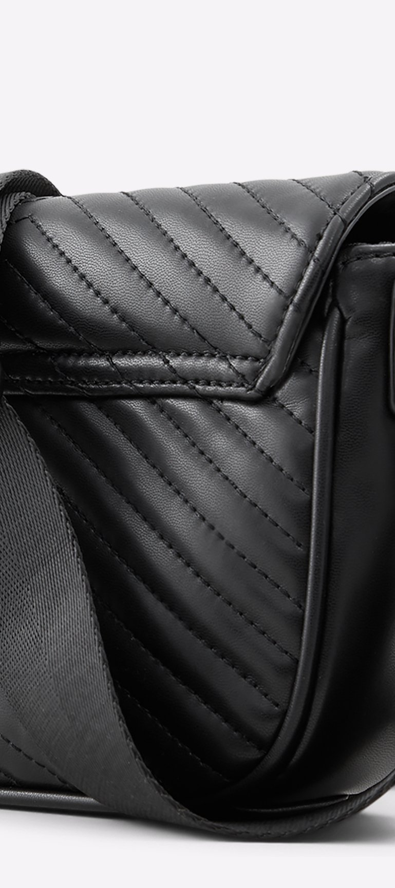 As an example of smart stye of efficient design, this handbag comes with it's own mini me! The quilted finish is completed by an adjustable strap, a magnetic closure, and detachable zippered pouch. Attach your keys to its miniature replica, and stowe change, power cords, and earbuds inside.