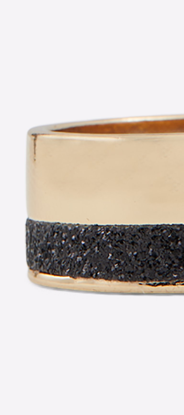 Bold and modern all at once, this black and gold ring will add a stylish focal point on any finger.