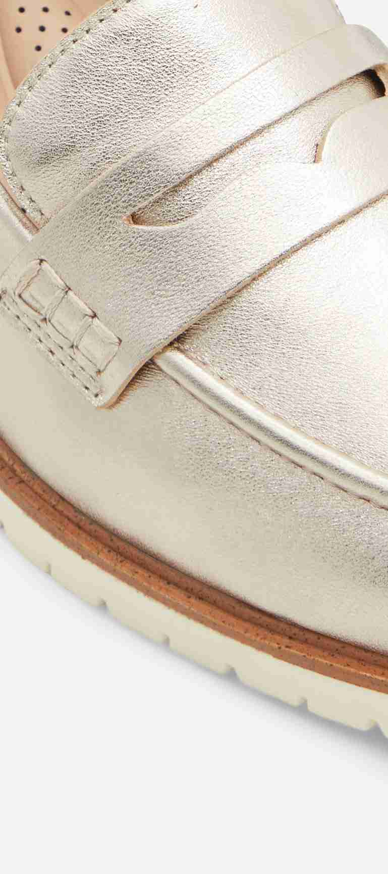 Material: LeatherSilhouette: LoafersFabric Name: MetallicSole: Thermo Plastic RubberMeasurements