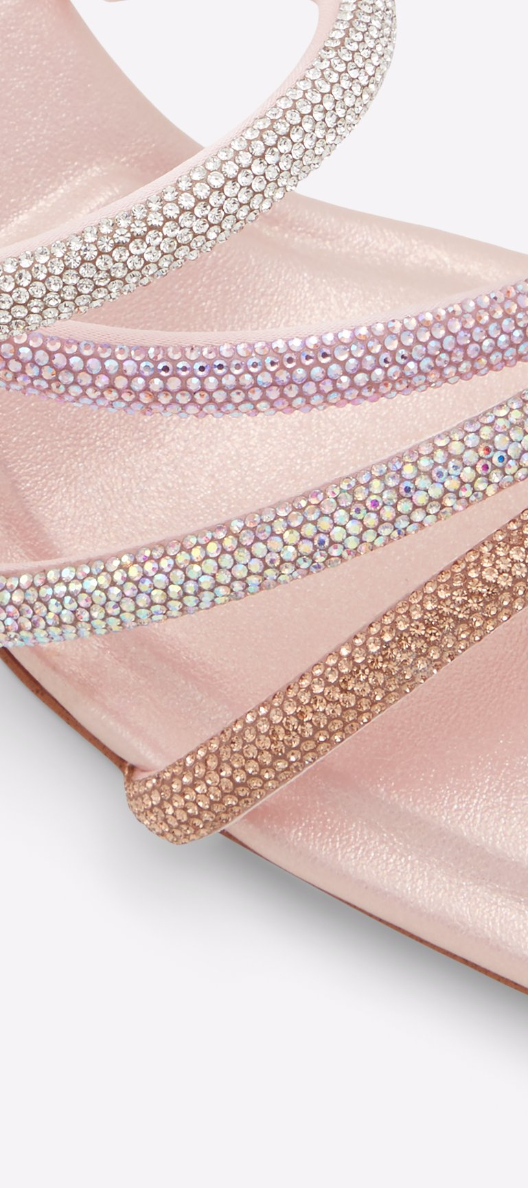 Major eye candy! Slide into these sparkly sandals with textured rhinestone straps, a statement block heel, and a modern square toe. An excellent choice to pair with your wedding guest dreses! Or slip on with denim cut offs for super casual glamour.
