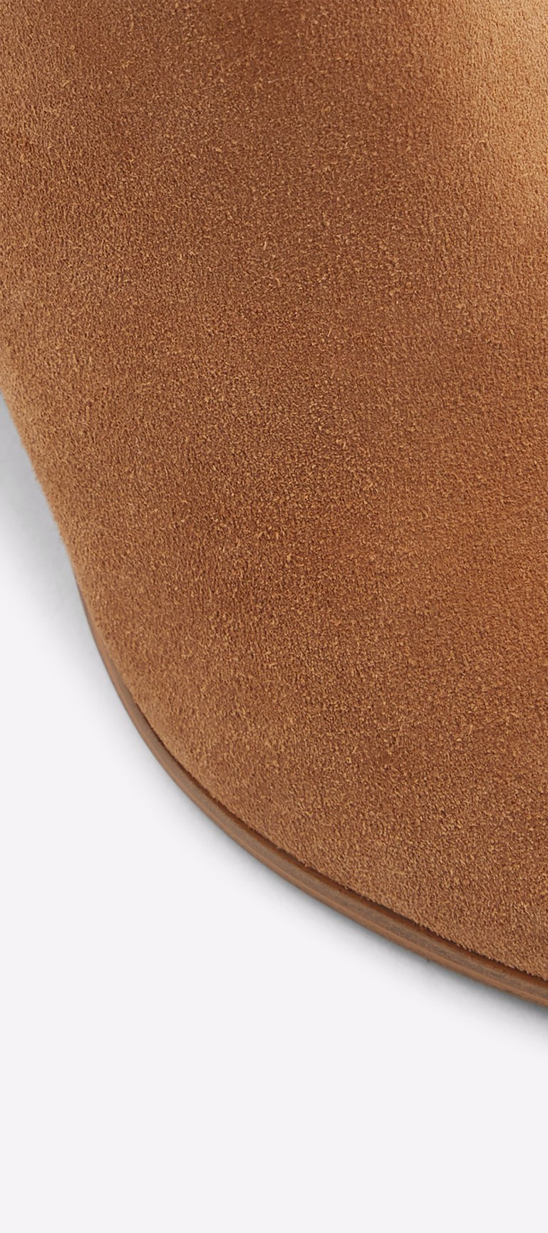 Look sassy in these suede booties with wood styled heels. So versatile they can be worn all year long