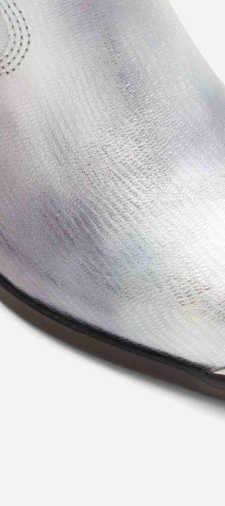 Material: LeatherSilhouette: Ankle BootsFabric Name: MetallicSole: Thermo Plastic RubberMeasurements