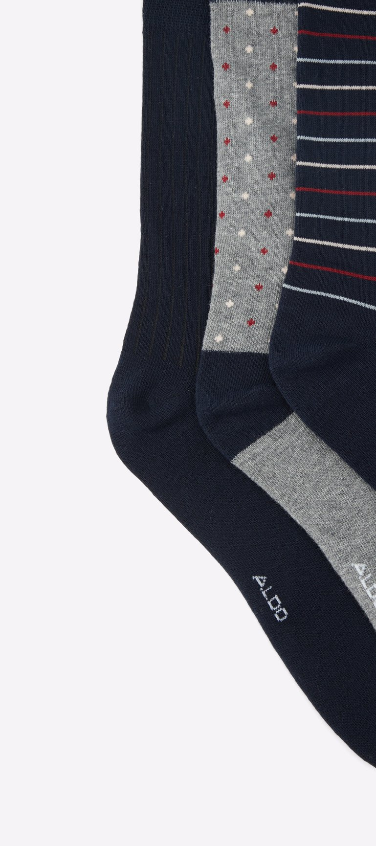 Complete your casual look with this three-pair pack of men’s knit crew socks. Navy, burgundy and light heather grey feature an above-the-ankle cut for just enough coverage.