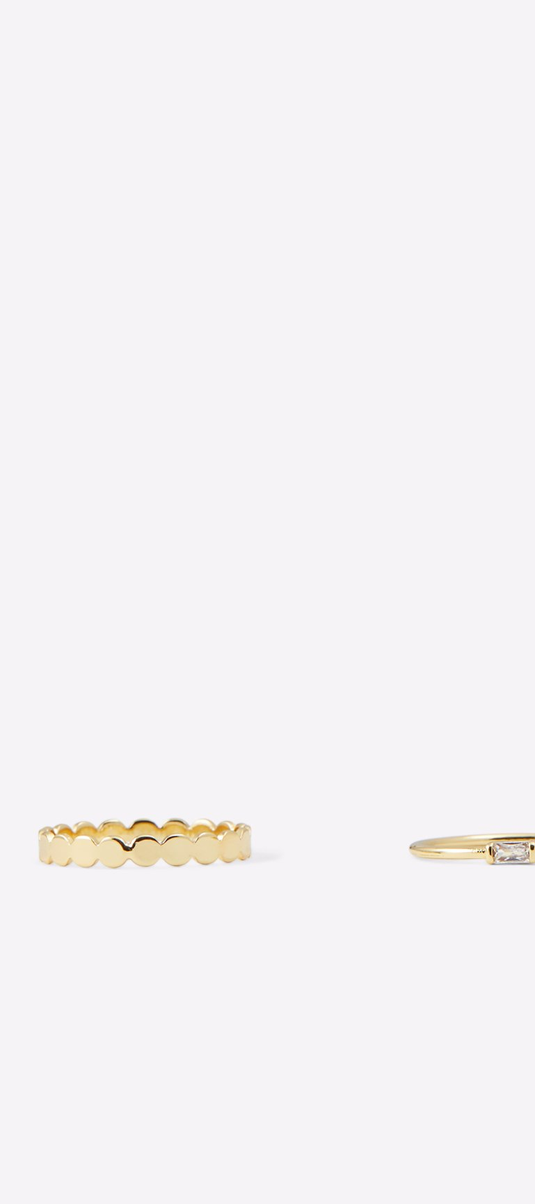 Add a subtle sophistication to your dressy-casual look with this elegant stacking ring. Three gold-plated bands feature varying widths and motifs for a unique finish to any outfit. Wear these rings individually, in multiples or stacked for a layered effect.