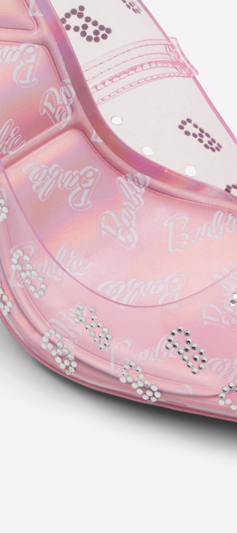 حذاء ستيسي شفاف بأسلوب باربي الأصلي وتوقيعها ، بدرجة جذابة من اللون الوردي و كعب عالي ، لكل عشاق باربي
