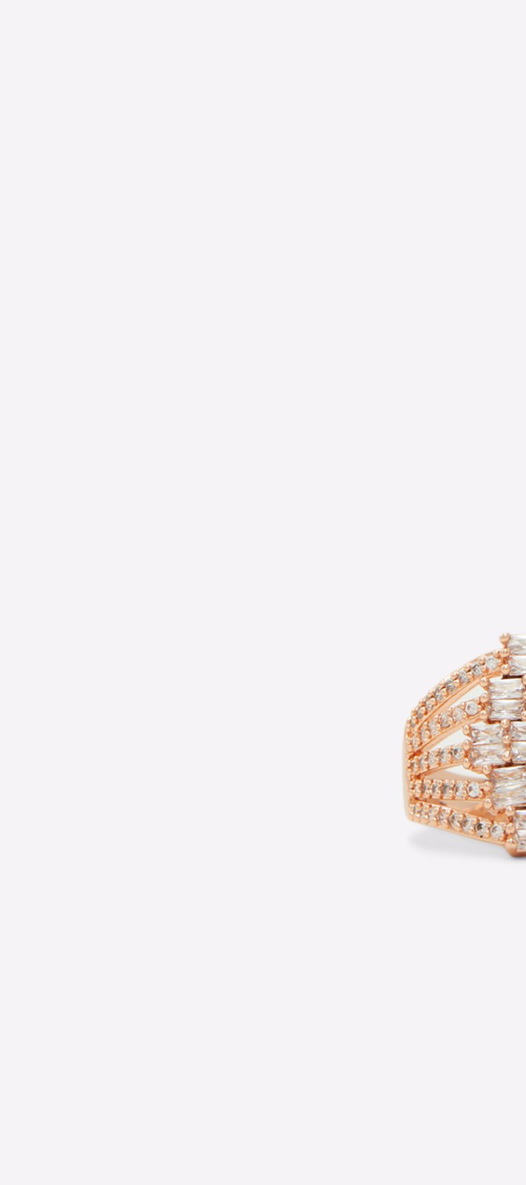 Impressively set with dozens of tiny crystals, this rose-gold ring makes a dramatic statement and leaves a jaw-dropping impression.