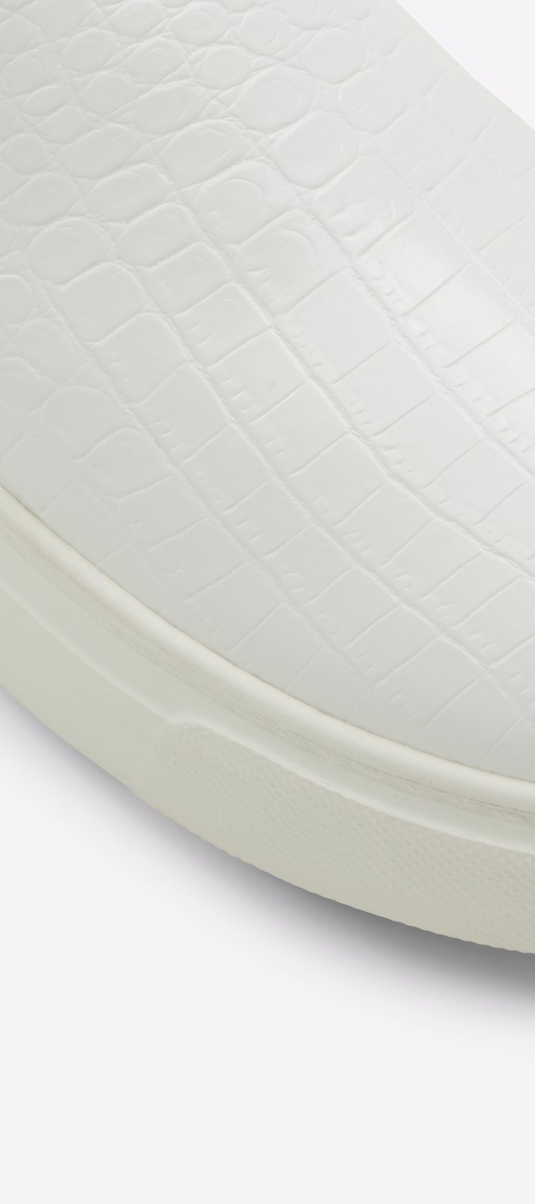 Love a great sneaker but not that bulky look? Check out our sleek little Pouncer slip-on. Bright white croc-embossed finish and low-top styling. Problem solved.