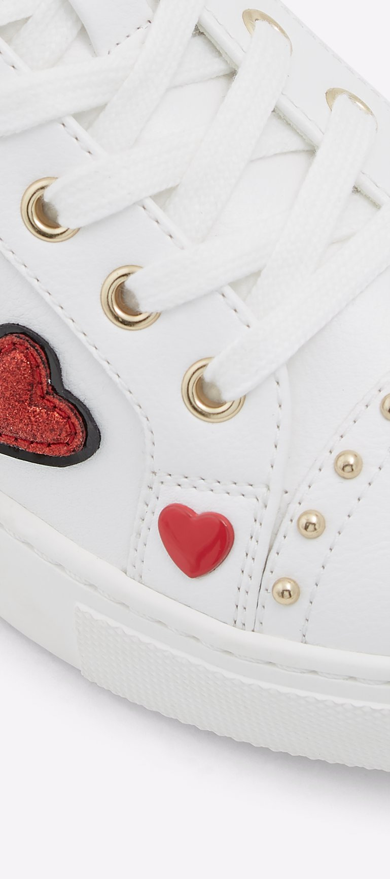 Classic sneakers construction coupled with heart-shaped appliques and adorable design details. Show off your daring and creative side with these low top sneakers.