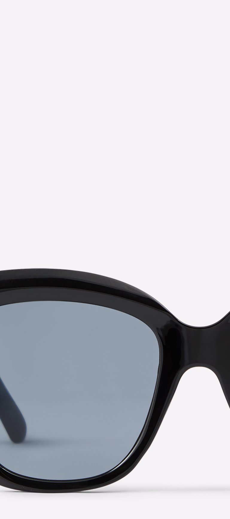 Give the classic cat eye silhouette a big bold upgrade with this pair of women’s sunglasses. Jet-black frames feature a smoke-tinted mono lens for an understated, tone-on-tone vibe while matching arms include gold-tone, temple detailing for a touch of bling.